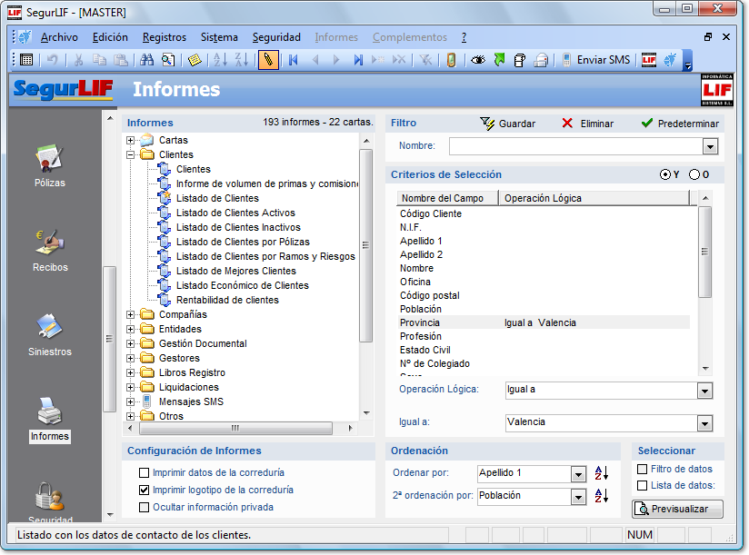 SegurLIF facilita la comunicacion del mediador con sus clientes permitiendo la realización de cartas personalizadas para enviarlas por correo, así como el envio de mensajes a móvil SMS de forma individual o masiva.