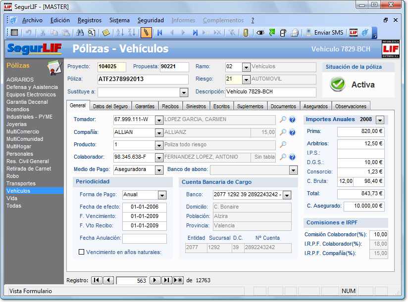 SegurLIF le permite gestionar todo tipo de entidades relacionadas con los Seguros; Clientes, Aseguradoras, Colaboradores, Gestores, Talleres, Hospitales, Péritos, Abogados, Implicados, Beneficiarios, Pre-Clientes, Contactos, etc.